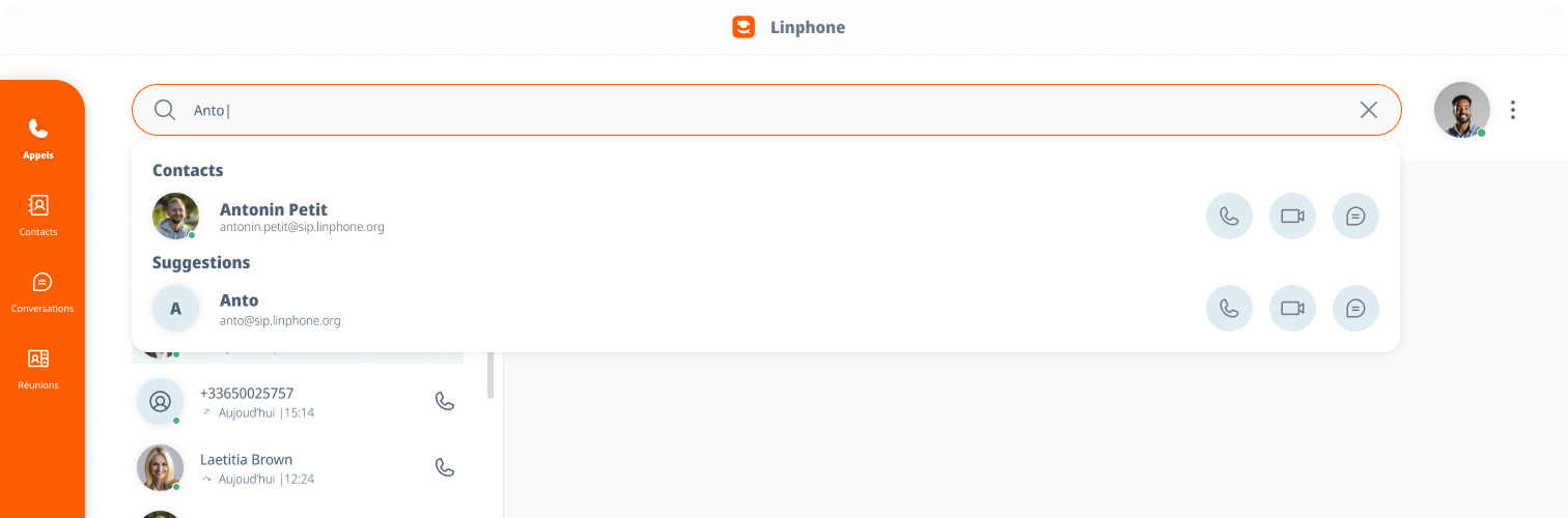 Dans Linphone desktop, plusieurs méthodes permettent de passer un appel. Suivez les étapes correspondant à votre utilisation :