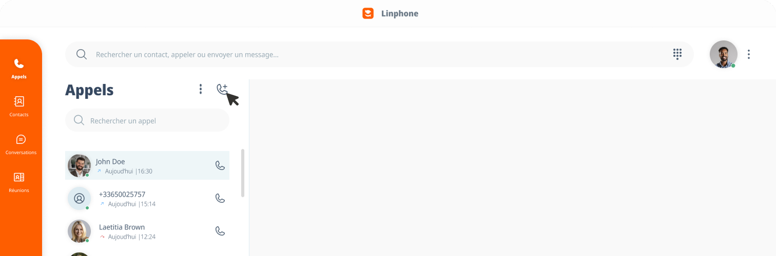 - Cliquez sur le bouton nouvel appel