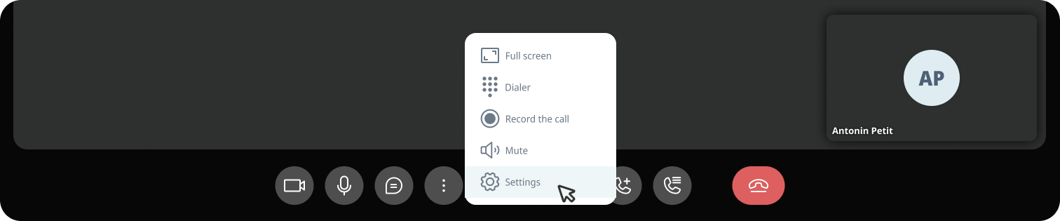 1. During a call, go to the call options and click on Settings.