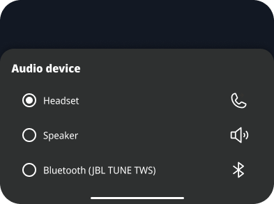 • Manual selection: Choose another audio output device.