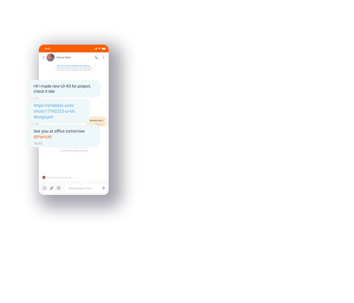 Offrez à vos utilisateurs des fonctionnalités de messagerie instantanée avancées (groupes, messages vocaux, réactions…), le partage de fichiers et la vidéoconférence.